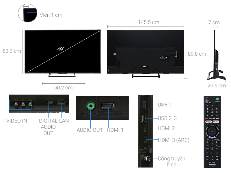 Internet Tivi Sony 4K 65 inch KD-65X7000E sở hữu thiết kế mỏng, kiểu dáng hiện đại, sẽ làm cho căn phòng của bạn thêm phần tinh tế.