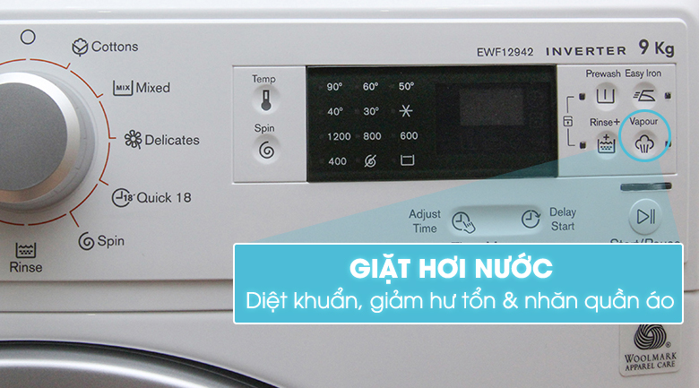 Bạn có thể hẹn giờ và điều chỉnh thời gian giặt hợp lý cho từng loại vải vóc hoặc quần áo với mức độ bẩn khác nhau. Với tính năng này, bạn sẽ tiết kiệm được một ít thời gian và chi phí trong khi quần áo vẫn được giặt sạch một cách hiệu quả.