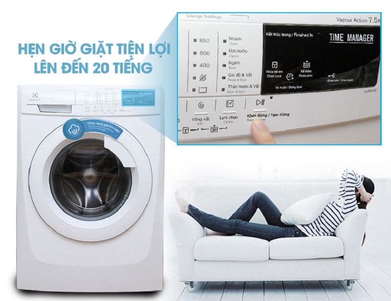 Máy giặt Electrolux EWF85743 có khả năng hẹn giờ, bạn sẽ chủ động hơn trong việc sắp xếp thời gian giặt đồ sao cho phù hợp với thời gian biểu của mình.