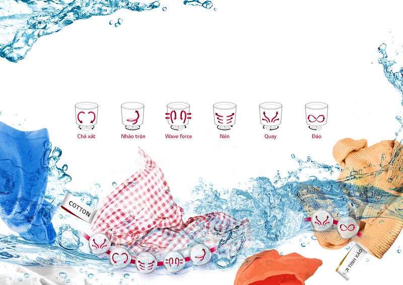Công nghệ giặt 6 Motion DD mô phỏng 6 động tác giặt tay, thực hiện dựa vào sự tương tác hỗ trợ của động cơ Inverter DD của LG. Nhờ có công nghệ này mà máy giặt LG giúp bạn giặt đồ sạch hơn và tăng cường khả năng tiết kiệm điện nước hiệu quả.