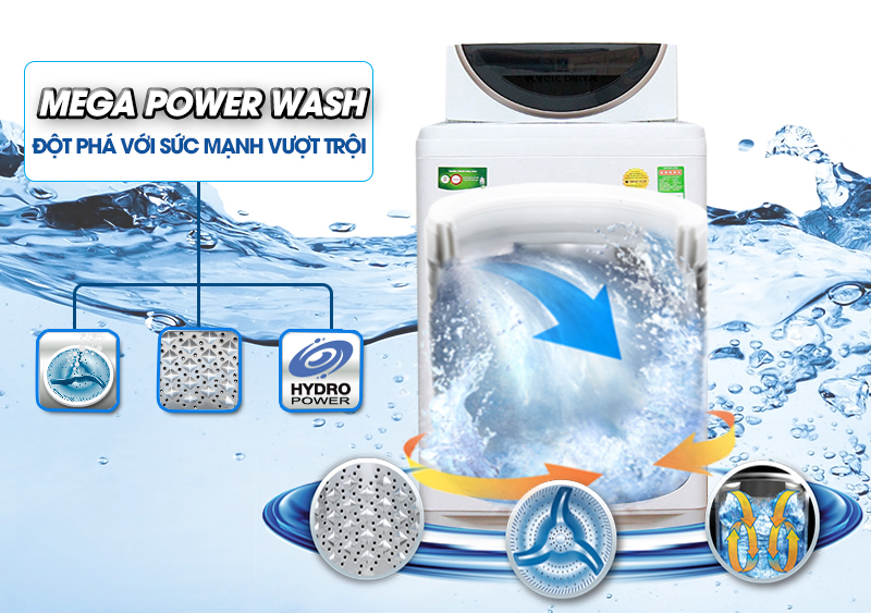 Mâm giặt Mega Power và lồng giặt ngôi sao pha lê