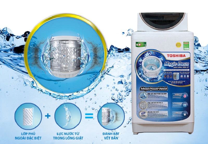 Công nghệ lồng giặt Magic Drum thần kỳ, đem đến cho máy giặt Toshiba AW-MF920LV WK khả năng giữ lồng giặt luôn được sạch sẽ nhờ lớp phủ đặc biệt cùng lực nước từ bên trong lồng giặt. Nhờ vậy, lồng giặt sẽ được kháng khuẩn tốt hơn.