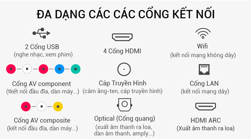 Smart Tivi LG 4K 65 inch 65UK6340PTF hỗ trợ nhiều chuẩn kết nối