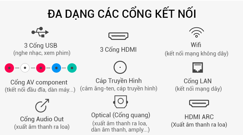 Cổng xuất âm thanh:Cổng Optical (Digital Audio Out), Jack 3.5 mm (cắm loa, tai nghe)