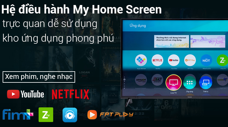 Ngoài ra Smart tivi Panasonic này còn có thể tải thêm các ứng dụng quen thuộc ở kho ứng dụng như: Zing Mp3, FPT Play, Zing TV,… phù hợp với nhu cầu giải trí của các thành viên trong gia đình.