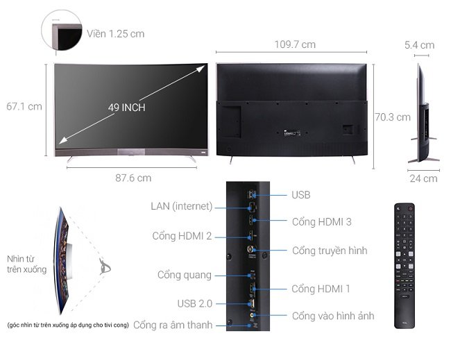 Bên cạnh đó, Tivi TCL 49P32-CF được thiết kế đặc biệt, các cạnh màn hình được uốn cong tinh tế cho khoảng cách từ người xem tới màn hình là như nhau tại mọi điểm. Dù bạn ngồi ở 2 bên góc thì sẽ vẫn có trải nghiệm xem tuyệt vời như khi ngồi ở giữa.