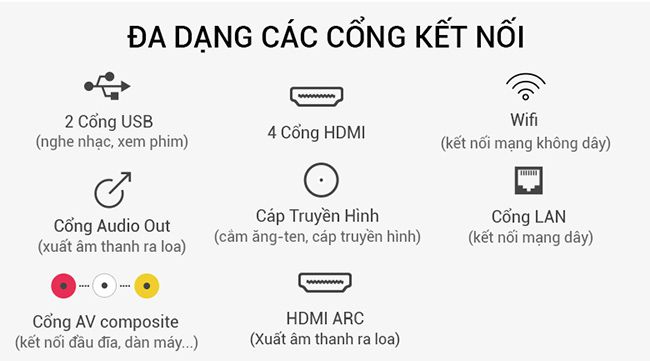 Với các cổng kết nối như: HDMI, USB, Composite… chiếc tivi Sharp 4K LC-50UA6800X sẽ giúp bạn dễ dàng chia sẻ các dữ liệu hình ảnh, âm thanh từ các thiết bị như đầu đĩa, laptop, dàn máy… lên màn hình tivi một cách nhanh chóng, dễ dàng nhất.