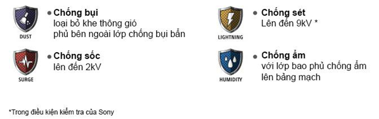 Công nghệ Sony X-Protection PRO giúp bảo vệ tivi tránh khỏi 4 tác động xấu từ môi trường, tránh rủi ro không đáng có xảy ra trong quá trình sử dụng.