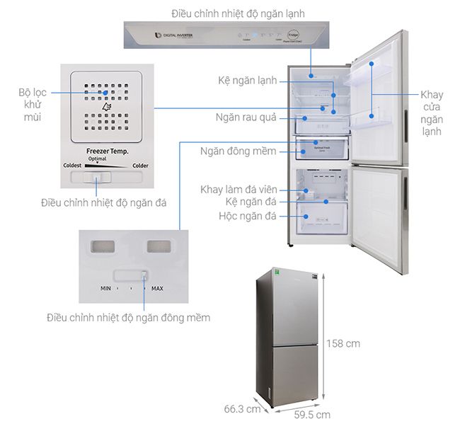 Tiện ích:Làm lạnh nhanh, Inverter tiết kiệm điện, Bảo quản thịt cá không cần rã đông